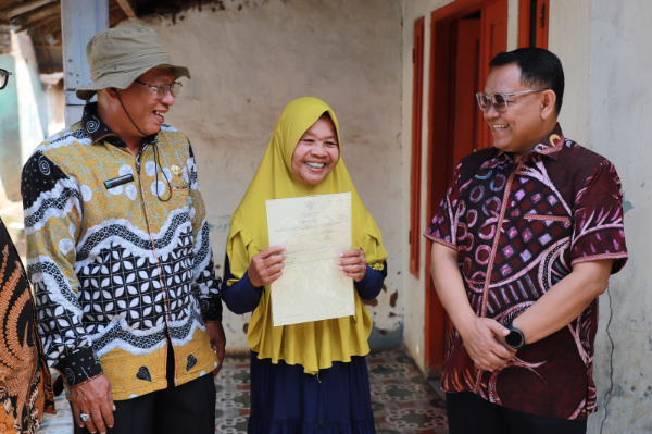 Bersama Kepala Kantor Pertanahan Serang, Kanwil BPN Banten Antar Sertipikat PTSL Langsung ke Warga