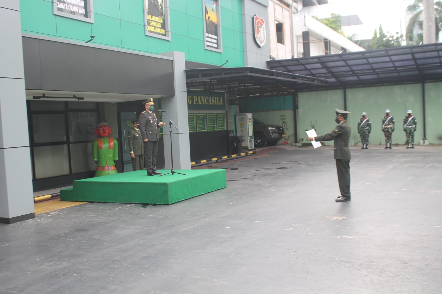 Penghormatan pasukan upacara kepada Irup dilanjutkan Laporan Danup kepada Irup. Kemudian Pengibaran Bendera Merah Putih diiringi lagu Kebangsaan “INDONESIA RAYA”.