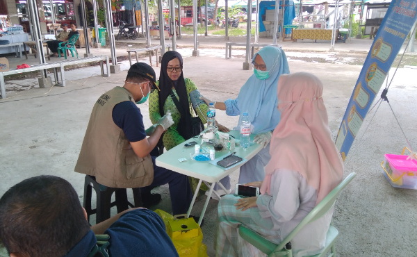 Dewi, petugas Dinkes Kota Bekasi yang memimpin timnya menjelaskan, Hari ini Dinkes Kota Bekasi bersama tim medis dari Puskesmas Jati Murni melakukan program dari Dinkes berupa secrening deteksi dini penyakit tidak menular. Pogramnya kali ini dilakukan di pasar-pasar tradisional di bawah naungan Disperindag.