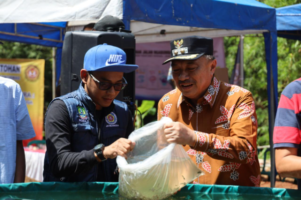Seputar Publik Kota Bekasi - Wakil Wali Kota Abdul Harris Bobihoe menghadiri kegiatan peresmian akses Situs Ngabumbang dan menebar ribuan benih ikan lele bersama kelompok pembudidaya ikan kkp 27 di Jembatan Mindu, Kelurahan Jatirangga, Jatisampurna.