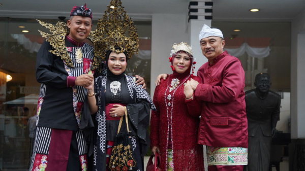 Sementara itu, Wakil Wali Kota Bekasi Abdul Harris Bobihoe bersama istri tampil dengan balutan pakaian modern adat Bekasi, yang merepresentasikan kearifan lokal serta kekayaan budaya Kota Bekasi sebagai bagian dari Jawa Barat.