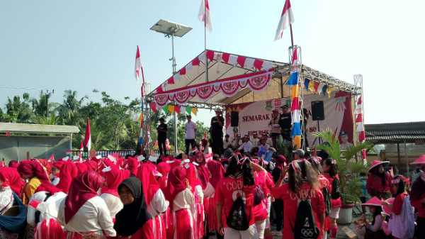 Seputar Publik Tangerang - Kepala desa koper Ayub melepas peserta lomba gerak jalan Semarak kemerdekaan dalam rangka menyambut Dirgahayu Republik Indonesia ke-80 tahun 2025 di halaman kantor desa koper, kecamatan kresek, sabtu (16/08/2025).