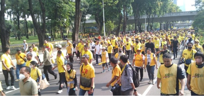 Seputarpublik, Jakarta –Peringatan Hari ulang tahun (HUT) ke-58 Partai Golkar diwarnai dengan aksi jalan sehat di kawasan Stadion Utama Gelora Bung Karno Senayan, Jakarta selatan pada Minggu (16/10/2022).