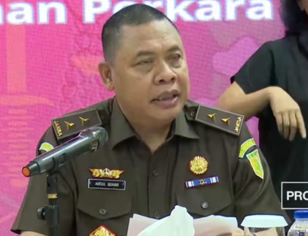 Direktur Penyidik Jaksa Agung Muda Bidang Tindak Pidana Khusus, Abdul Qohar, saat memberikan keterangan kepada media.