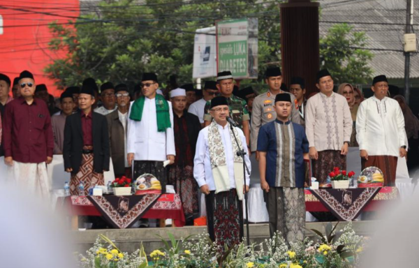 Sebelumnya bersama Wali Kota Bekasi Tri Adhianto, Wakil Wali Kota Abdul Harris Bobihoe menyambut rombongan kirab santri dipanggung kehormatan.