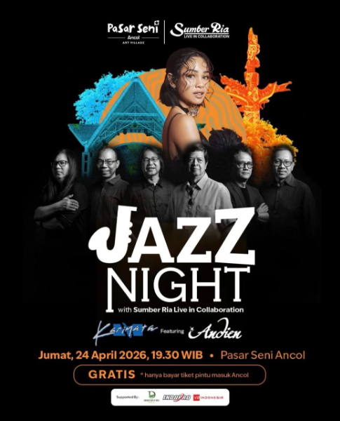 Dalam momentum International Jazz Day, Pasar Seni Ancol menggelar dua acara spesial bertajuk “Jazz Night with Sumber Ria Live in Collaboration featuring Andien” serta pameran seni “Pura Pura Rupa” pada Jumat (24/4/2026).