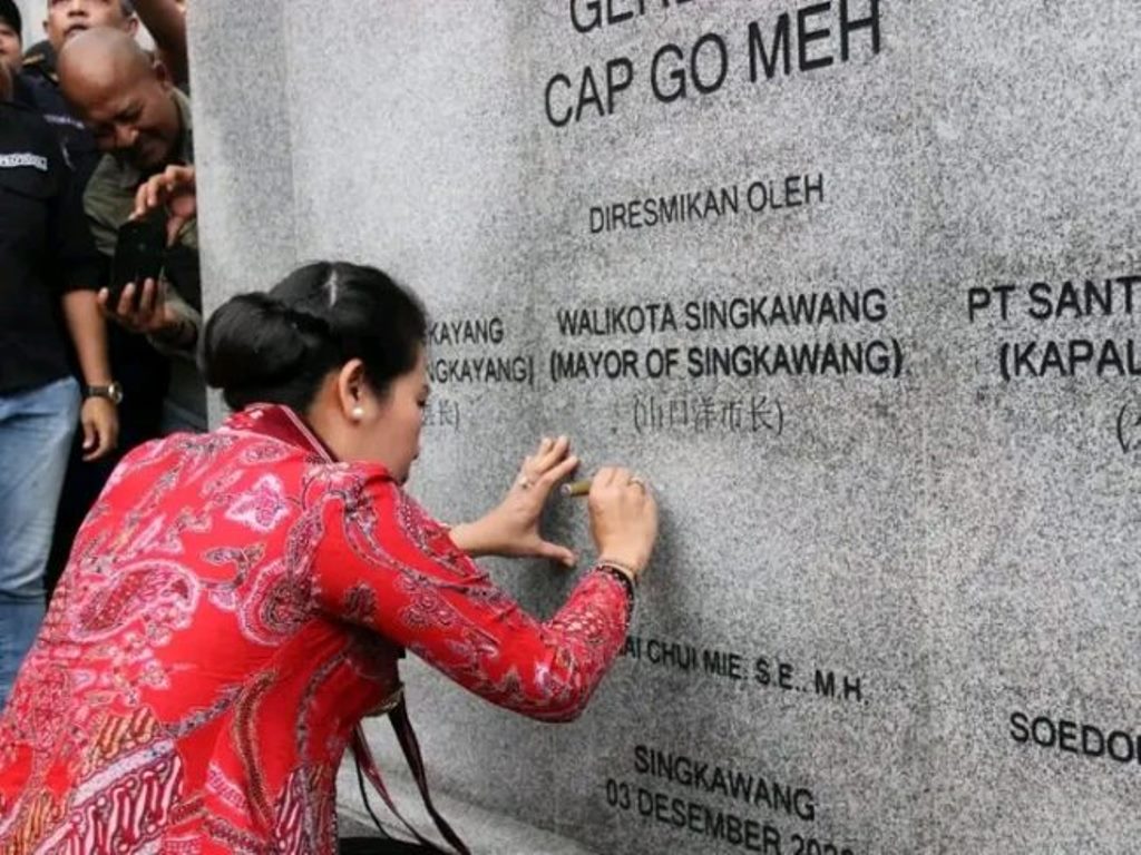 “Setelah melewati proses yang panjang, akhirnya tiba pada peresmian pintu gerbang “Cap Go Meh” Batas antara Kota Singkawang dengan Kabupaten Bengkayang,” ujar Tjhai Chui Mie saat peresmian.
