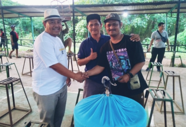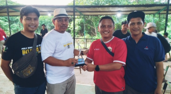Ketua DPC PAN Bekasi Utara Lukman Hakim saat menyerahkan piala Lukman Hakim Cup kepada juara II lomba burung kicau DCA Summarecon Bekasi, Minggu (31/8/2025).