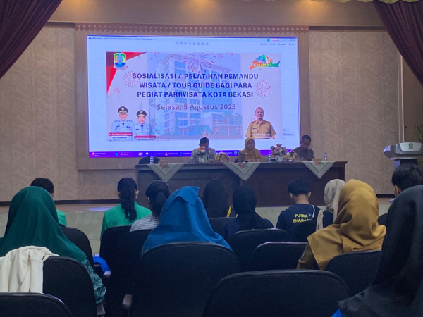 Seputar Publik, Kota Bekasi - Dinas Pariwisata dan Kebudayaan (Disparbud) Kota Bekasi menggelar kegiatan sosialisasi pelatihan pemandu wisata (tour guide) yang ditujukan bagi para pegiat pariwisata di Kota Bekasi yang dilaksanakan di Gedung Balai Patriot Pemkot Bekasi, Selasa (05/08).