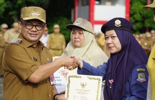 Apresiasi diserahkan langsung Pj. Wali Kota Bekasi, Gani Muhamad pada apel rutin aparatur di lingkungan kantor Pemerintah Kota Bekasi, Senin pagi (13/1/2025).