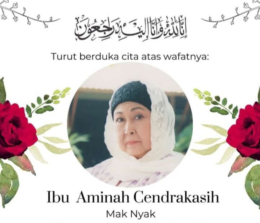 “Innalillahi wainna ilaihi rojiun telah Wafat Mak Nyak (Aminah Cendrakasih) pukul 20.00.WIB Semoga Almarhumah diterima seluruh amal ibadahnya dan diberikan tempat terbaik disisi Allah SWT Aaminn YRA (Al-fatihah),” tulis @sidoelanaksekolahan, Rabu malam (21/12/2022)