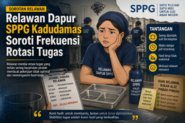 Menanggapi aspirasi tersebut, pihak pengelola SPPG diharapkan dapat melakukan evaluasi terhadap mekanisme penugasan relawan guna menciptakan lingkungan kerja yang lebih kondusif serta meningkatkan kualitas pelayanan.