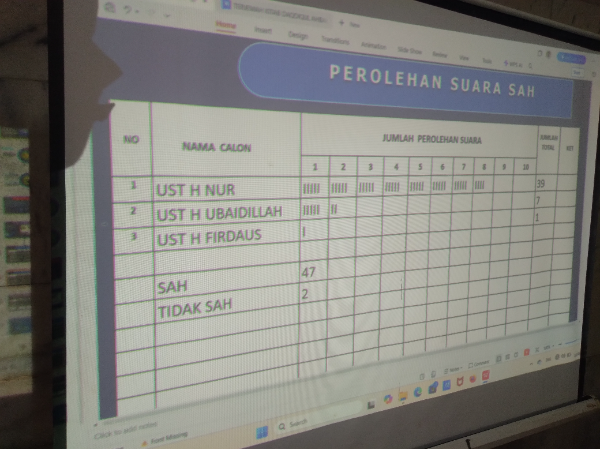 Hasil penghitungan suara pemilihan ketua DKM Masjid Jamie Al Hidayah Kaliabang Bungur masa bhakti 2025-2030.