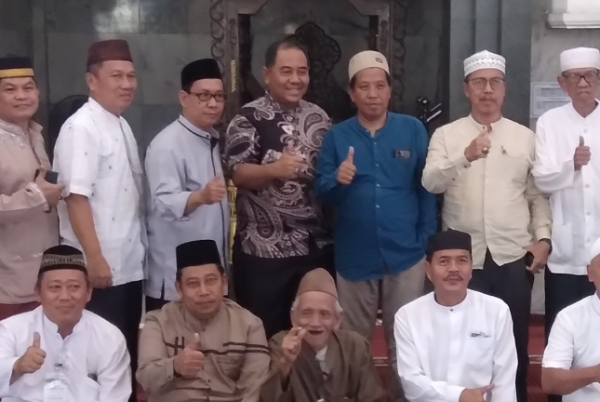 Ketua DPC PAN Bekasi Utara Lukman Hakim selaku tokoh masyarakat Kaliabang Bungur berpoto bersama ketua DKM Masjid Jamie Al Hidayah Terpilih Ustadz H. Nurul Anwar beserta alim ulama.