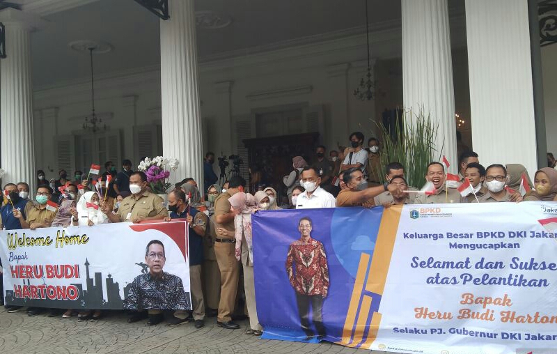 Seputarpublik, Jakarta – Ratusan Aparatur Sipil Negara (ASN) menyambut Penjabat Gubernur DKI Jakarta Heru Budi Hartono yang disebut “pulang kampung” (kembali ke lingkungan birokrasi Provinsi DKI Jakarta) di Balai Kota setelah dilantik oleh Menteri Dalam Negeri Tito Karnavian, Senin (17/10/2022).